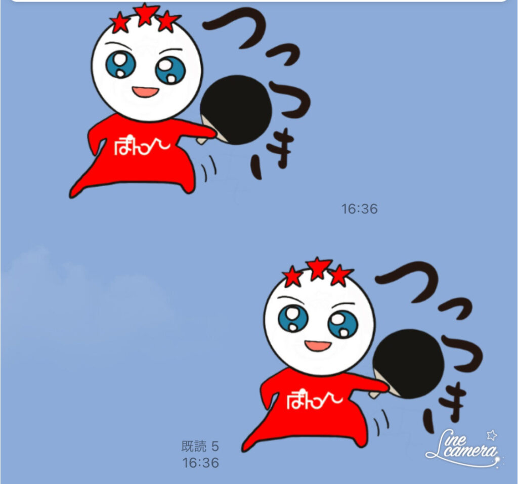 安倍選手が落書きしたピンポンボールのキャラをブラッシュアップ。卓球の公式試合用ボール「スリースター」に見立てたヘアスタイルにアレンジ。勢いあまってLINEのスタンプを作っちゃいました。