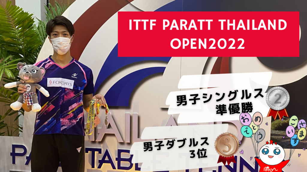 ITTF ParaTT Thailand Open2022に、はぴぽん♪のチームメイトである立石アルファ裕一(TATEISHI Arufuahirokazu JPN)選手が出場しました。みごとシングルス:銀メダル、ダブルス:銅メダルの成績を収めました。